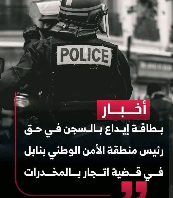 وكانت النيابة العمومية قد قررت سابقاً إحالة رئيس منطقة الأمن الوطني بنابل بحالة سراح أمام قاضي التحقيق، في إطار التحقيقات الجارية بخصوص ملف الاتجار بالمخدرات. وبعد الاستماع إليه رسمياً، قرر قاضي التحقيق إصدار بطاقة إيداع بالسجن في حقه، في انتظار استكمال بقية الأبحاث القضائية في القضية.
